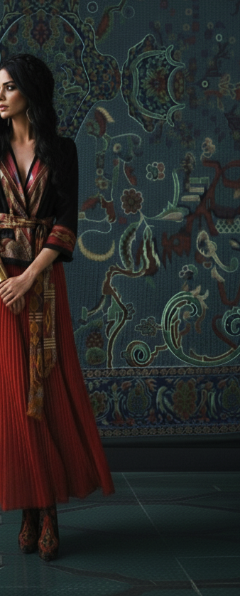 Dress with French tul and uzbek ikat